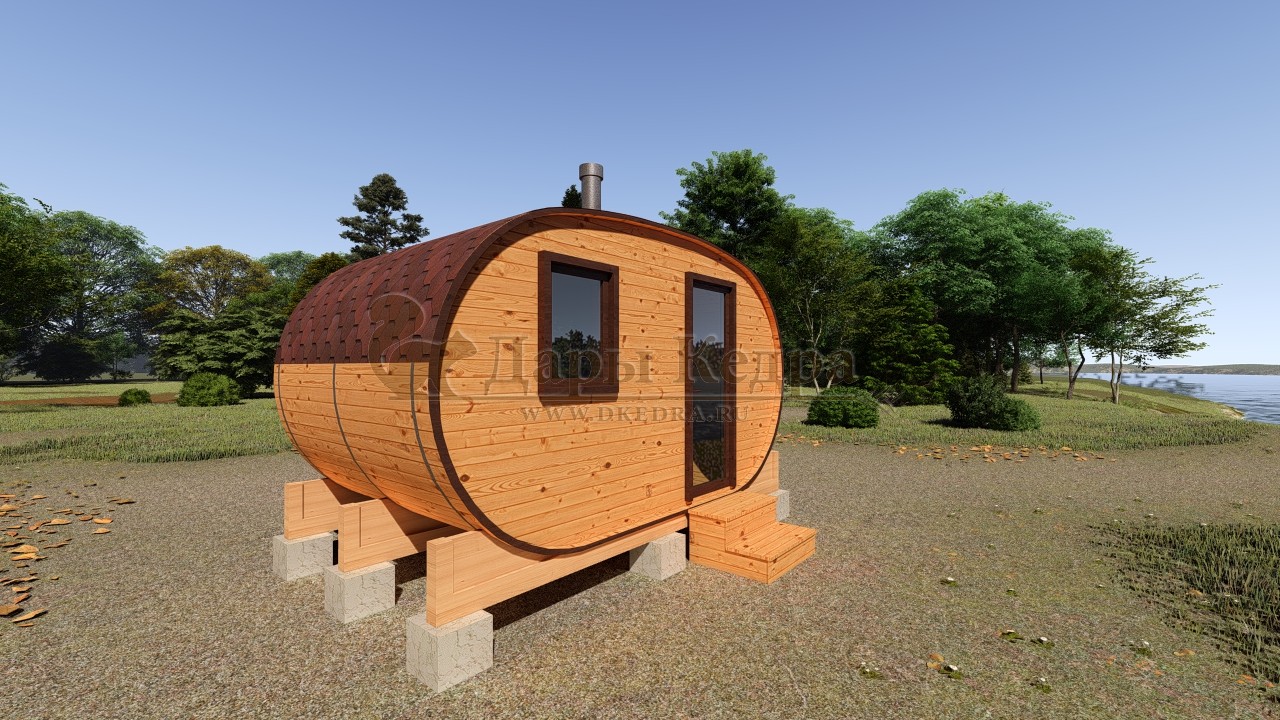 Баня-бочка овальная из кедра 4х2,2 метра Овальная баня-бочка из кедра просторная и вместительная. Имеет два отделения: раздевалку, которую можно использовать как комнату отдыха, и парилку. Для удобства пользования раздевалка оснащена лавочкой, полкой и вешалкой из кедра. В парильном отделении располагается печь и двухуровневый открытый полок. Для установки такой модели не требуется полноценный фундамент, поэтому при необходимости ее можно перенести на другое место. Так же баню-бочку можно укомплектовать верандой со скамейками, козырьком и печью с внешней загрузкой, благодаря которой весь мусор после топки останется на улице. Древесина кедра насыщена эфирными маслами и фитонцидами, которые активируются при воздействии температур. Таким образом, парение в каркаско-щитовых банях из кедра вдвойне полезно.