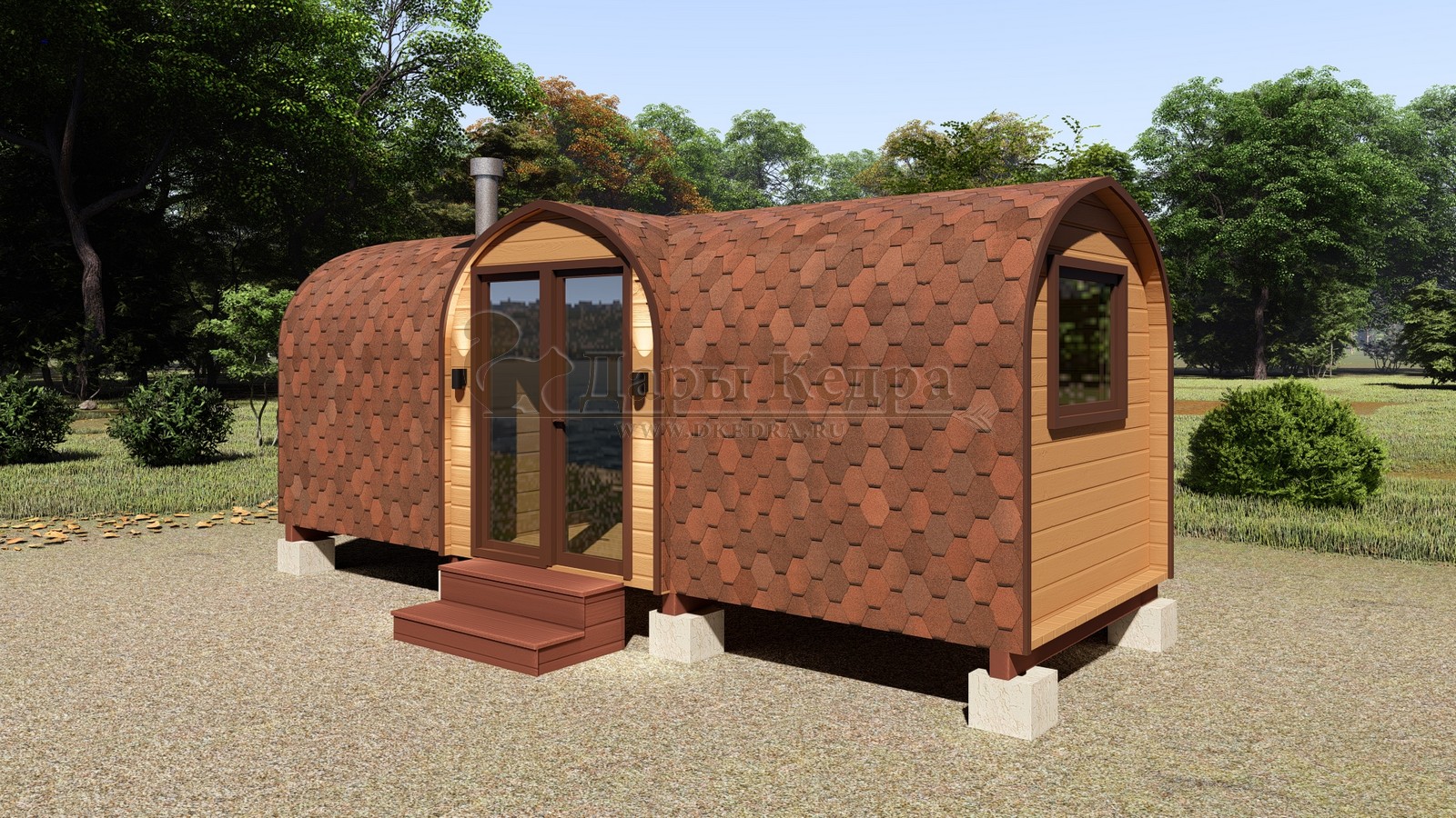 Баня-бочка «Викинг» — это современный взгляд на традиционную баню, выполненный в оригинальном скандинавском стиле. Благодаря высокому корпусу и прямым углам основания внутри создаётся просторное и удобное пространство, а округлая форма потолка обеспечивает быстрый прогрев и равномерную циркуляцию пара.