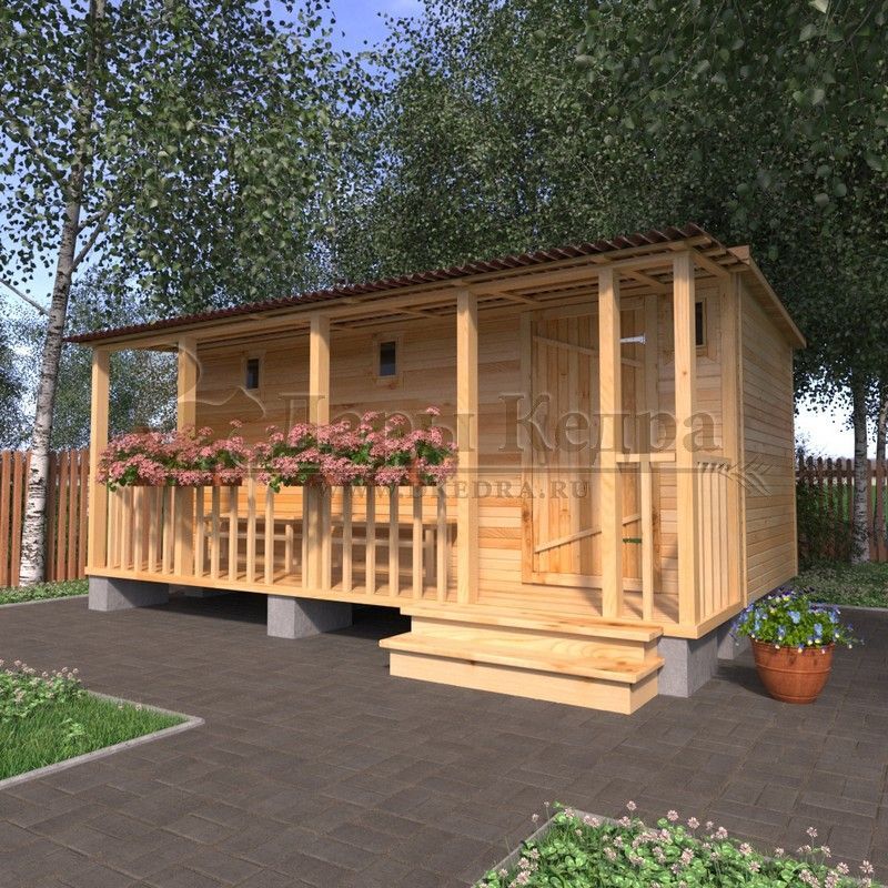 Каркасно-щитовая баня из кедра «Мини» с верандой Это классическая прямоугольная модель бани с двумя отделениями: парилкой и раздевалкой. Для удобства пользования раздевалка оснащена лавочкой и вешалкой. Парилка оборудована двухуровневым открытым полком и печью. За счет небольшой конструкции баня нагревается в течении 30 минут. На просторной веранде можно оставить вещи или отдохнуть после парения. Каркасно-щитовую баню можно заказать как в готовом, так и в разборном варианте. В разборной модели готовые щиты из кедра быстро собираются в полноценное строение, что также позволяет исключить лишний строительный мусор. Такая баня не требует полноценный фундамент, поэтому при необходимости ее можно перенести в другое место. Обращаем Ваше внимание, что в стандартную комплектацию бани входит полок открытого типа в парной. Дополнительно можно заказать полок закрытого типа или лавку! Древесина кедра насыщена эфирными маслами и фитонцидами, которые активируются при воздействии температур. Таким образом, парение в каркаско-щитовых банях из кедра становится еще полезнее.