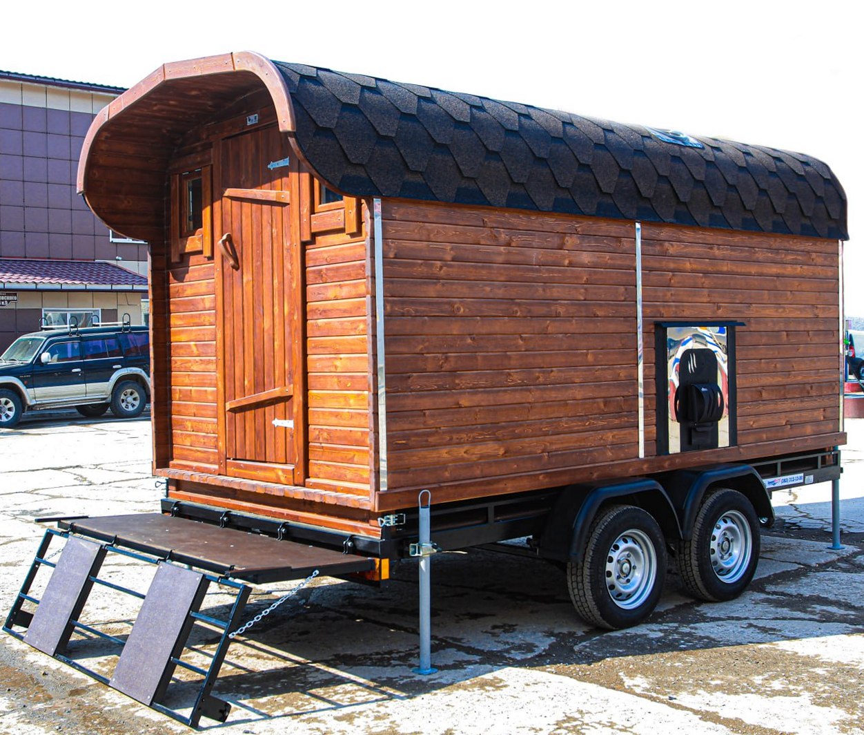 Наши бани являются перевозными конструкциями. В стандартном варианте они предназначены для стационарной установки. Однако, они могут быть установлены на специальный прицеп, что позволяет использовать их как "бани на колесах" для перемещения.