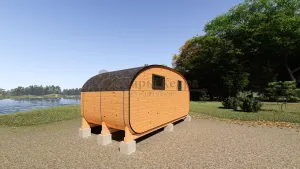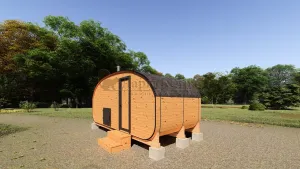 Мобильная баня-бочка с каждым днем набирает все большую популярность благодаря её возможной транспортировки куда угодно: на отдых в лесу, на рыбалку или на побережье реки