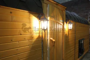 Изысканный светильник под старину сделает вашу баню особенной, добавив красоты и света снаружи.